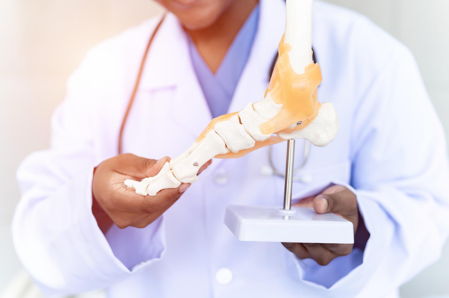 変形性足関節症と同様に、関節リウマチに対しても足関節固定術(あしかんせつこていじゅつ)を行います。足関節にある脛骨(けいこつ)と距骨(きょこつ)を金属製のインプラントで固定して、痛みや腫れを軽減します。関節の破壊が著しく、足の変形が強い場合に行われることが多いです。痛みを取り除く効果が高く安定性も高まりますが、足首の可動域が狭くなることや日常で動かしづらさを感じやすくなることがデメリットとして挙げられます。