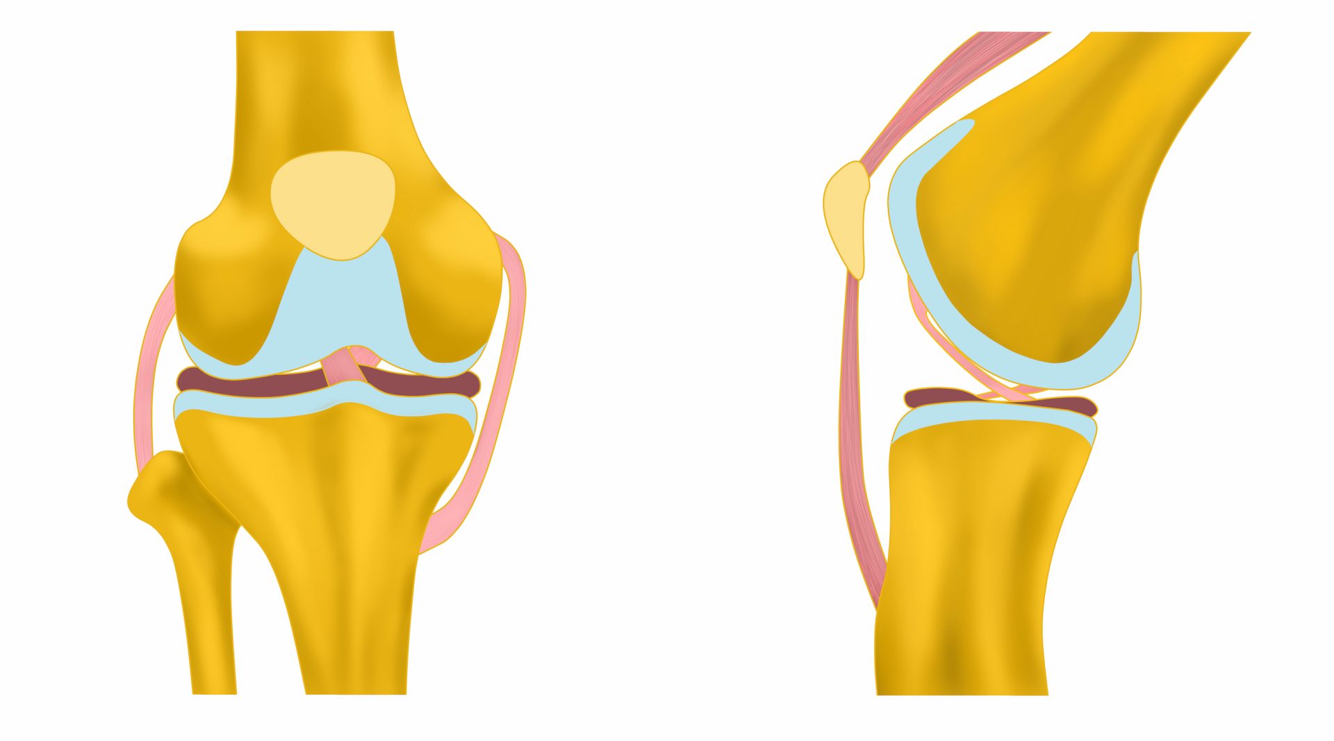 ひざ関節を構成する脛骨(けいこつ)、大腿骨(だいたいこつ)、膝蓋骨(しつがいこつ)のぞれぞれの表面は「関節軟骨」で覆われています。